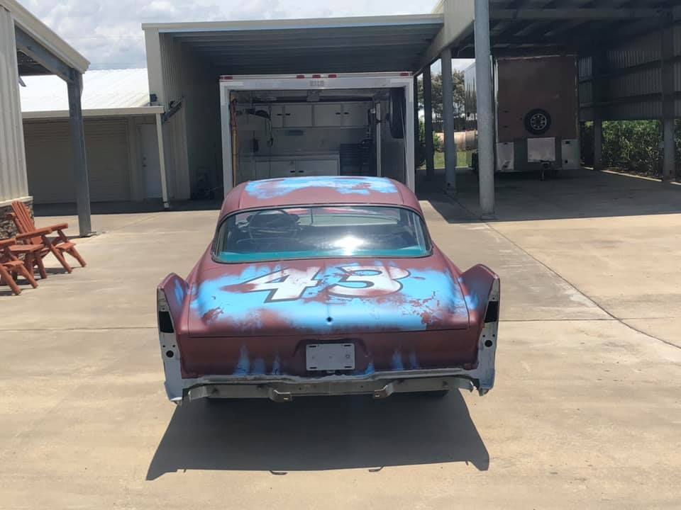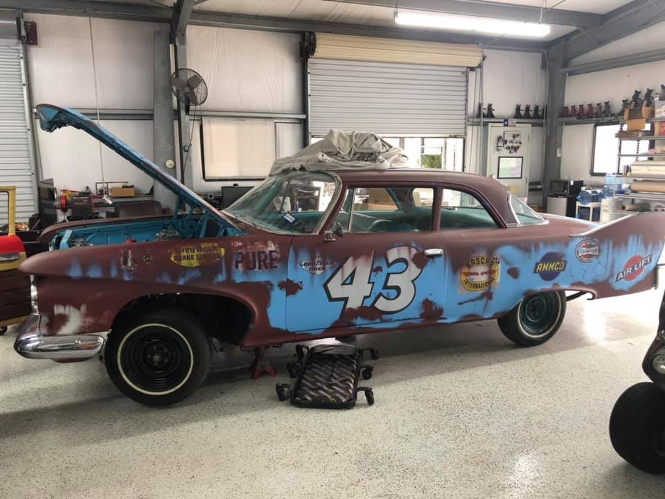 After scheduling for a wrap, I planned to have it also wrapped as a Woody, but green. However, the thought of doing it as a Petty car kept coming back. I seesawed for weeks, then decided I’d like for the car to look like The King’s first car. However I wanted it to look as if it had been parked in back of the shop for 60 years – bleached by the Sun. I then started collecting photos of the car from the 60s, the sponsor decals and some examples (the coffee cans) of degrees/patterns of rust.