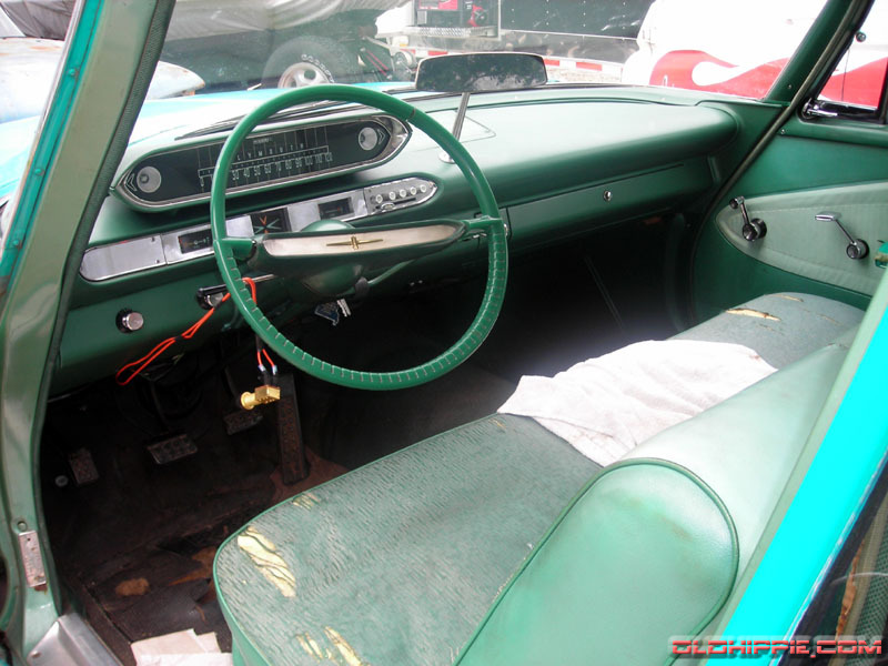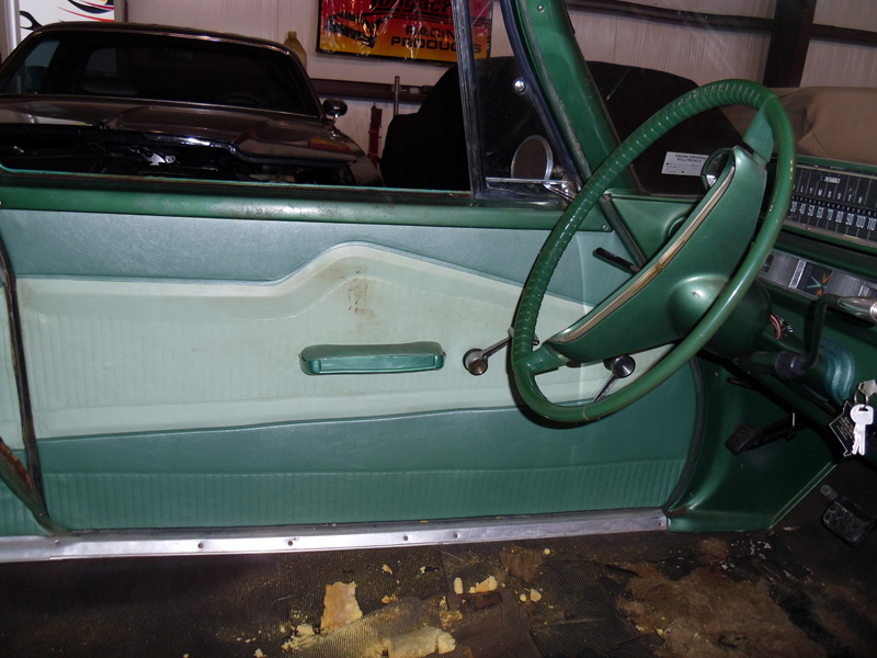 I drove up to my bud’s shop in Conway, AR and was waiting when our mutual bud from Michigan arrived with the car. We rolled it off his open trailer and I was quite pleased when inspecting the car. In the glovebox was a raggedy old log book with every purchase made for the car – starting with purchasing the car in 1959 and ending with last gas purchased earlier in the month. It ha columns for date, mileage, description and amount paid. This log substantiated the claims of low mileage and not driven in winters.